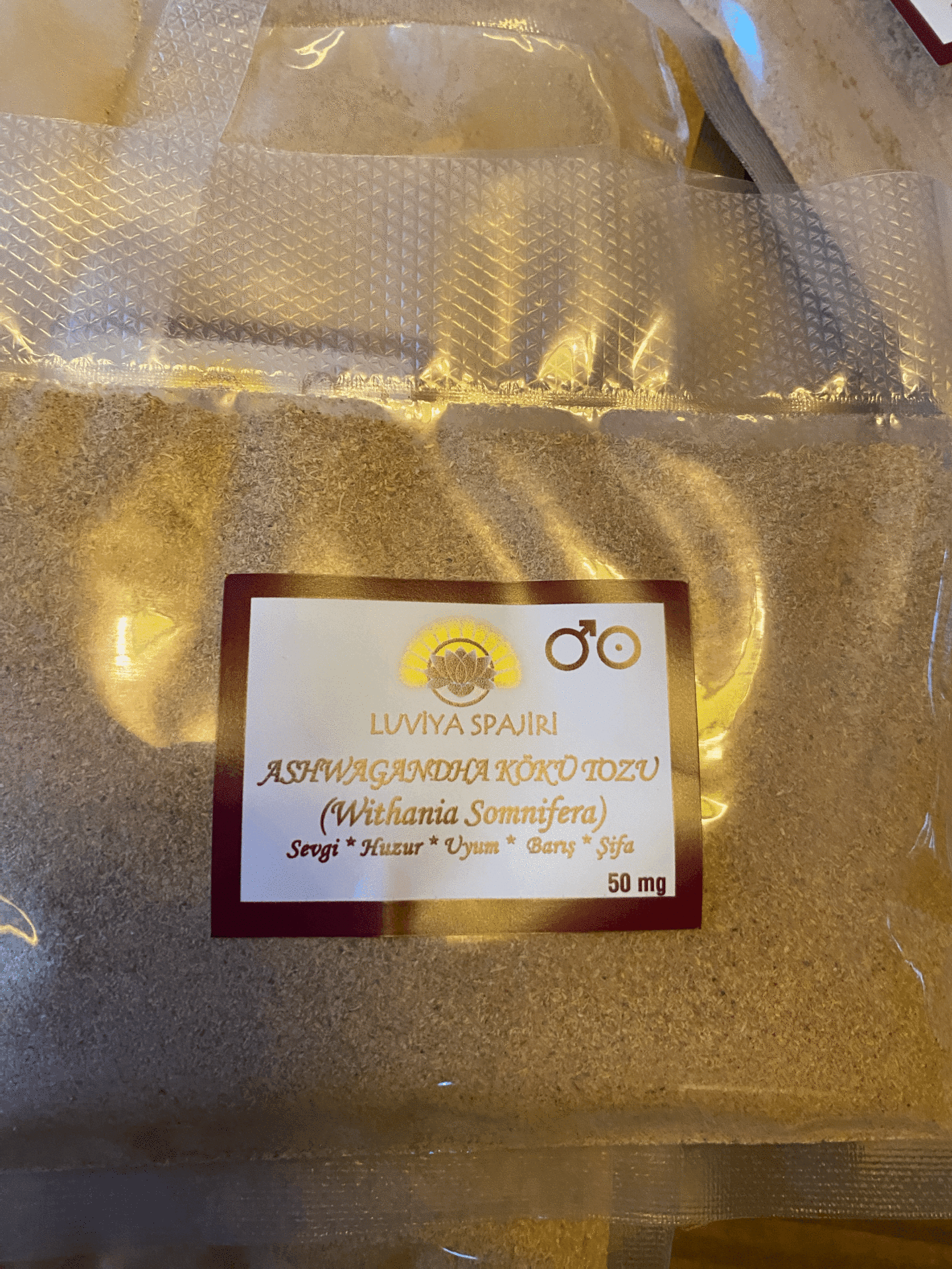 Luviya’nın bahçesinde tamamen organik olarak sevgiyle yetiştirilen ashwagandhalarımızın kökleri kurutuldu, toz haline getirildi, 50 gr’lık poşetlere kondu ve sizin bedeninize şifa olmaya hazır