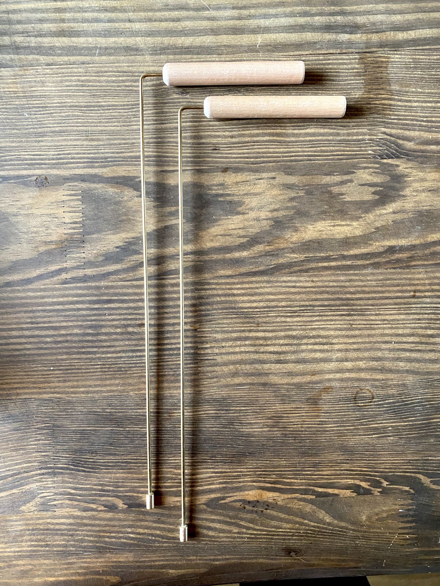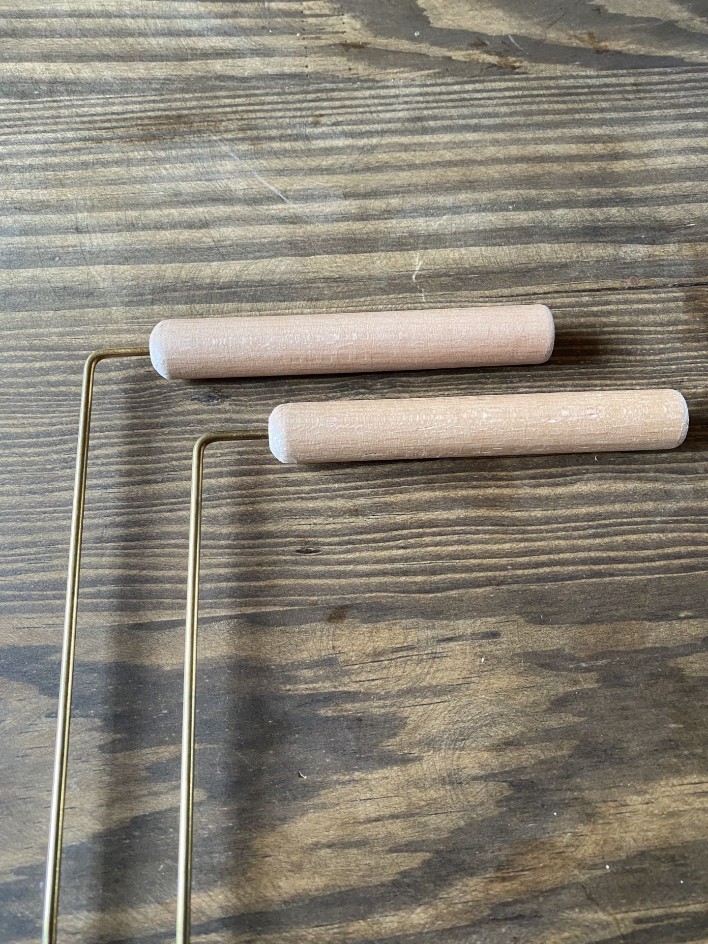 Pirinç alaşımdır, tutma yeri tahtadır.